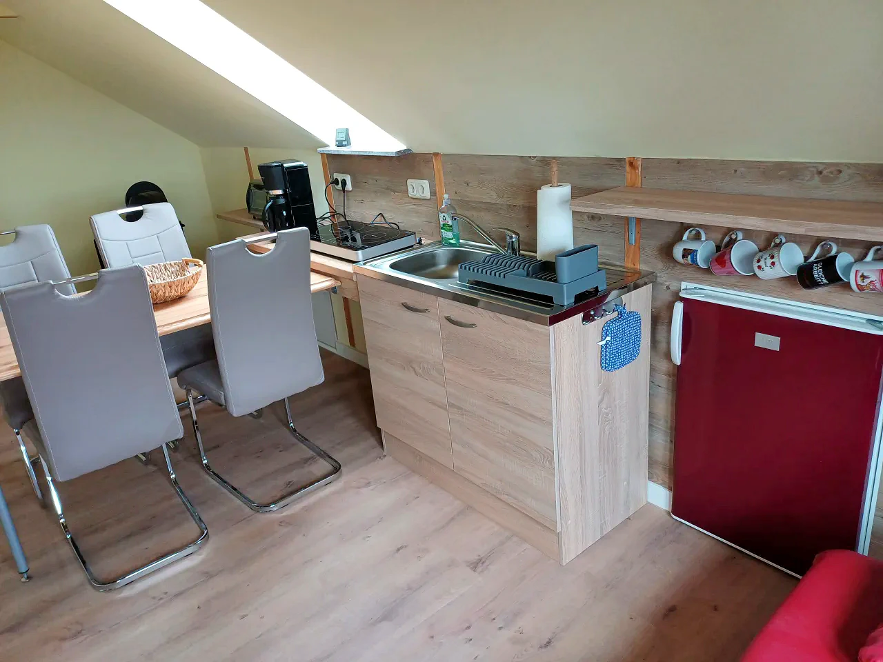Von Mitte Mai bis Mitte September besteht die Möglichkeit, das komplette Ferienhaus inklusive Dachgeschoss zu mieten. (Preis Fewo unten zzgl. 60,00 € für die obere Wohnung)