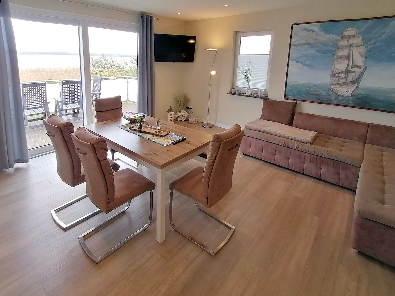 • Große Terrasse mit herrlichem Blick auf das Achterwasser