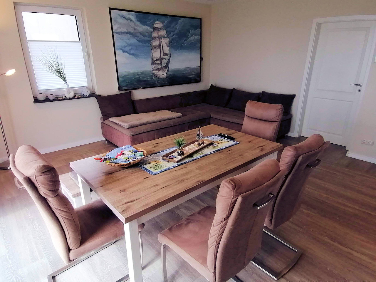 • Großer Esstisch, bequeme Eckcouch